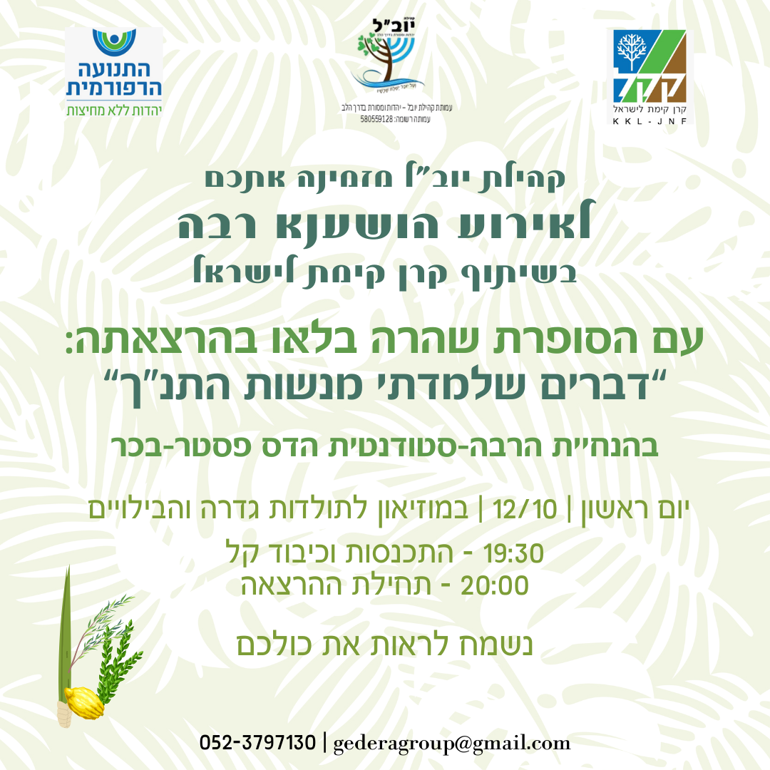 האירוע יתקיים במוזיאון לתולדות גדרה והבילויים.
